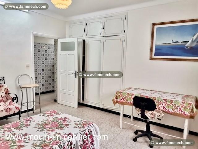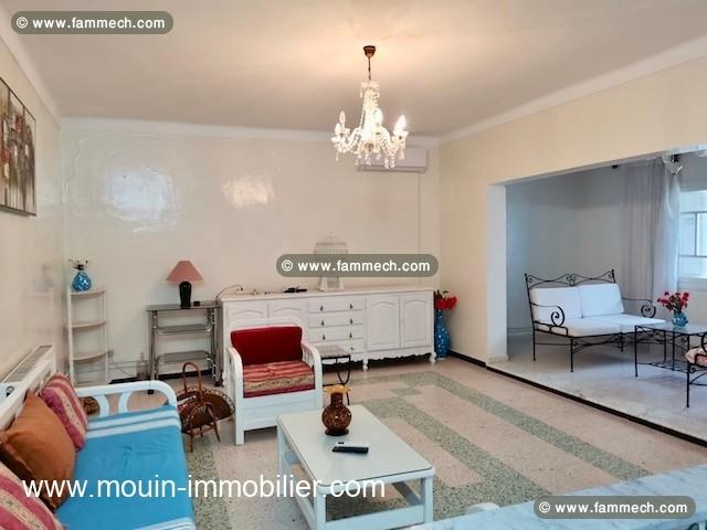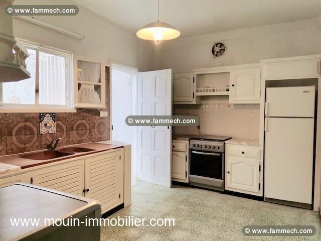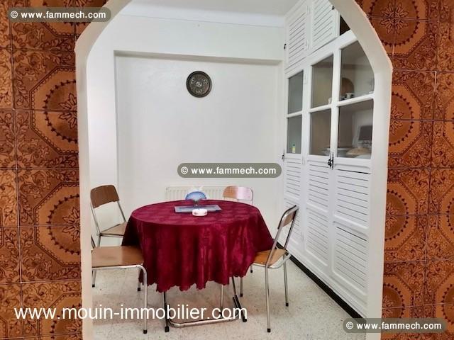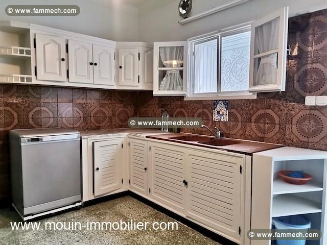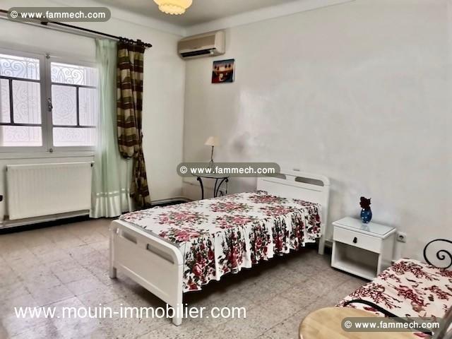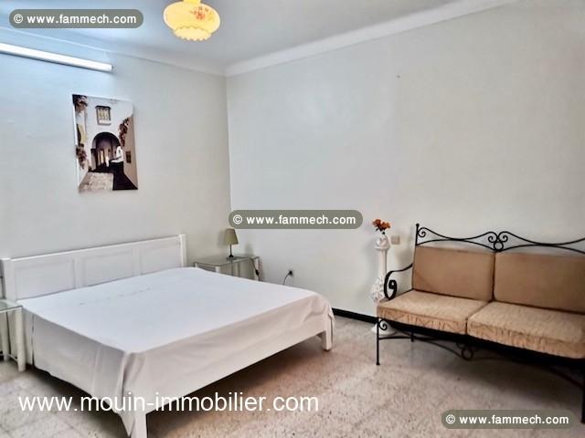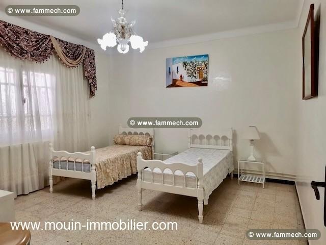 A louer à l'année, un rez de chaussée de villa située à Hammamet dans un quartier calme et résidentiel, à 800m de la plage et à 10 min du centre ville.